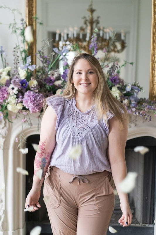 In 2016, I moved to Houston. With a lot of free time and no friends to fill it, I started my blog …on the B.L.. In 2018, Amanda reached out to me for a collaboration to get the word out about her gorgeous poseys. I was excited because flowers. She walked into my living room with her dog, handed me flowers, met my dog, and declared, “We’re going to be friends.” From that moment on, we’ve been joined at the hip. We decided to elevate our friendship even further in 2020, when she started teaching me design. Our brick and mortar opened in 2021, and I became a bigger part of the design team. Amanda and I have vastly different talents and passions. I love designing, but I’m a left-brained writer at heart. In 2023, she asked me to take on the role of COO, which is a very fancy title for, I’m super organized and love doing the behind the scenes part of running a business, which does not bring Amanda joy. So she’s the art, and I’m the day-to-day odds and ends. I absolutely love working with my best friend. Creating floral art and connecting with our clients has been such an unexpected turn of events in my career. Though, I am still a full-time freelance writer, I now get to exercise the right side of my brain more.